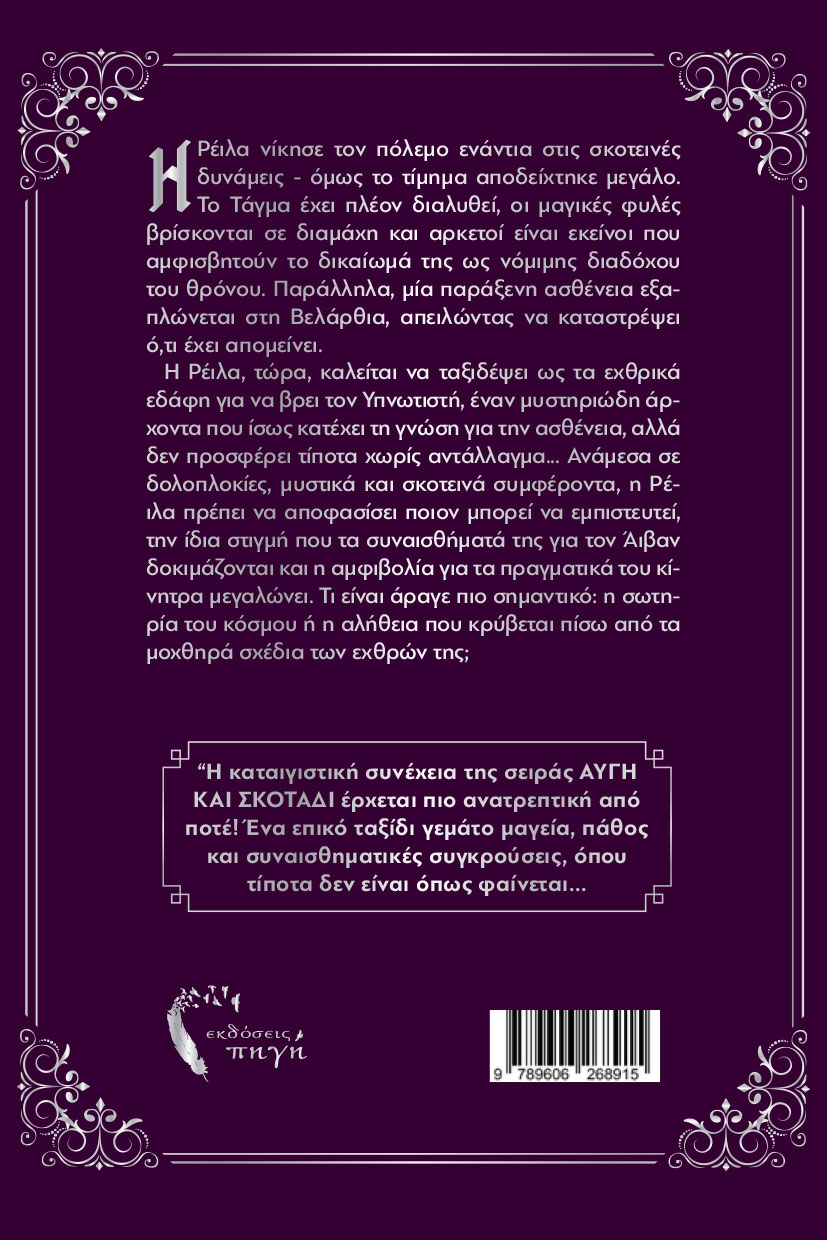 Η Ρέιλα, τώρα, καλείται να ταξιδέψει ως τα εχθρικά εδάφη για να βρει τον Υπνωτιστή, έναν µυστηριώδη άρχοντα που ίσως κατέχει τη γνώση για την ασθένεια, αλλά δεν προσφέρει τίποτα χωρίς αντάλλαγµα… Ανάµεσα σε δολοπλοκίες, µυστικά και σκοτεινά συµφέροντα, η Ρέιλα πρέπει να αποφασίσει ποιον µπορεί να εµπιστευτεί, την ίδια στιγµή που τα συναισθήµατά της για τον Άιβαν δοκιµάζονται και η αµφιβολία για τα πραγµατικά του κίνητρα µεγαλώνει. Τι είναι άραγε πιο σηµαντικό: η σωτηρία του κόσµου ή η αλήθεια που κρύβεται πίσω από τα µοχθηρά σχέδια των εχθρών της;
