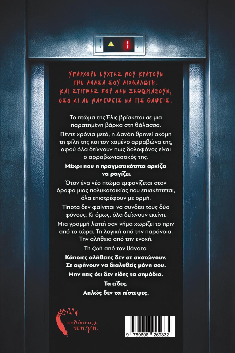 Όταν ένα νέο πτώµα εµφανίζεται στον όροφο µιας πολυκατοικίας που επισκέπτεται, όλα επιστρέφουν µε ορµή. Τίποτα δεν φαίνεται να συνδέει τους δύο φόνους. Κι όµως, όλα δείχνουν εκείνη. Μια γραµµή λεπτή σαν νήµα χωρίζει το πριν από το τώρα. Τη λογική από την παράνοια. Την αλήθεια από την ενοχή. Τη ζωή από τον θάνατο.